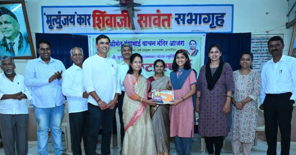 श्रीमंत गंगामाई वाचन मंदिर आजरा येथे मराठी भाषा दिन कार्यक्रम उत्साहात संपन्न झाला. ग्रंथालयाचे अध्यक्ष डॉ अशोक वाचुळकर यांच्या हस्ते कुसुमाग्रजांच्या प्रतिमेचे पूजन करण्यात आले. मराठी भाषा दिनानिमित्त के शुभांगी गजानन वायंगणकर यांच्या स्मरणार्थ शालेय नाट्यछटा स्पर्धा व ग्रंथालयातील नविन पुस्तकांचे प्रदर्शन आयोजित करण्यात आले. ग्रंथालयाच्या संचालिका डॉ. अंजनी देशपांडे या प्रमुख पाहुण्या म्हणून उपस्थित होत्या. शालेय नाट्यछटा स्पर्धेत प्राथमिक गटात प्रथम क्रमांक कु. अंतरा कृष्णा पाटील – विद्यामंदिर होणेवाडी हिने मिळवीला व्दितीय क्रमांक कु. जान्हवी विश्वास कांबळे – विद्यामंदिर वाटंगी तर तृतीय क्रमांक कु. अन्वी राहुल नेवरेकर रोझरी हायस्कुल आजरा यांना मिळाला. माध्यमिक गटात प्रथम क्रमांक कु. आर्या संदिप वाटवे आजरा हायस्कूल हिने मिळवीला. व्दितीय क्रमांक कु. ओवी विशाल रेळेकर रोझरी हायस्कूल आजरा तर तृतीय क्रमांक कु. वेदिका विजय पोतदार आजरा हायस्कुल आजरा यांना मिळाला. विजेत्या स्पर्धकांना डॉ. अंजनी देशपांडे व मान्यवरांच्या हस्ते पारितोषिके देण्यात आली. आजरा तालुक्यातील विविध शाळातील ४५ विद्यार्थ्यांनी या स्पर्धेत उत्स्फुर्त सहभाग घेतला.