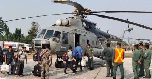 हेलिकॉप्टरने निवडणूक कर्मचारी निघाले कर्तव्यावर.