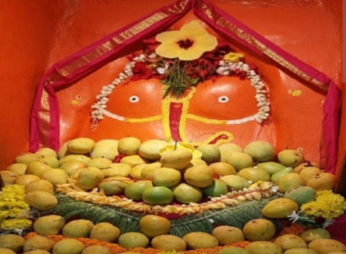 🟥अक्षयतृतीये निमित्त गणपतीपुळेच्या गणपती बाप्पास आंब्याची आरास.