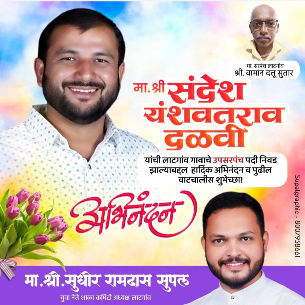 दि. २१ रोजी झाली. संदेश यशवंत दळवी यांना उपसरपंच पदी काम करण्याची संधी मिळाली. याकामी अधिकारी म्हणून ग्रामपंचायत लाटगावचे ग्रामसेवक सागर किरुळकर आणि काम पाहिले. तर सरपंच वामन दत्तू सुतार तथा सर्व सदस्य यांचे उपस्थितीत लाटगाव गावाचे श्री. दळवी यांची निवड झाली. यावेळी ग्रामपंचायत व ग्रामस्थ यांच्या वतीने सत्कार करण्यात आला.