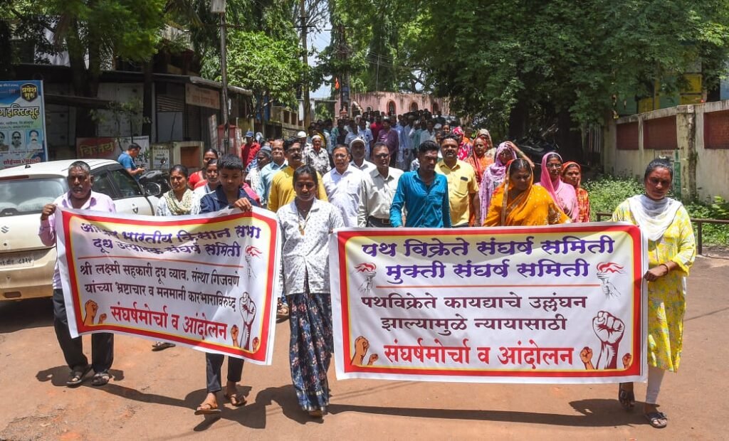 हा संघर्ष मोर्चा तहसील कार्यालय ते प्रांत कार्यालय असा निघाला होता. या मोर्चाचे नेतृत्व संग्राम सावंत, अँड. दशरथ दळवी, प्रा.अनिल उंद्रे व प्रमोद पाटील यांनी केले. यावेळी जोरदार घोषणा व प्रशासनाचा निषेध करण्यात आला. यानंतर मोर्चाचे रूपांतर सभेमध्ये संग्राम सावंत, अँड. दशरथ दळवी, बाबासाहेब पाटील विनोद पाटील, गायत्री रणदिवे यांची भाषणे झाली. त्यानंतर प्रांताधिकारी कार्यालयात प्रांताधिकारी व मुख्याधिकारी यांच्याबरोबर अखिल भारतीय किसान सभा दूध उत्पादक संघर्ष समिती पत्याविक्रेते संघर्ष समिती व मुक्ती संघर्ष समिती यांच्या पदाधिकाऱ्यांबरोबर तसेच शिष्टमंडळाबरोबर बैठक झाली.