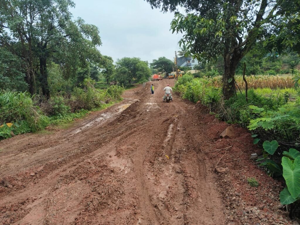 🛑मलिग्रे कागिणवाडी रस्तावर गसरगुंडीचा खेळ.- रस्त्यावर चिखलाचा साम्राज्य..