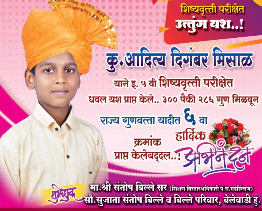 इयत्ता पाचवी शिष्यवृत्ती परीक्षेत.- आदित्य मिसाळ राज्य गुणवंता यादीत सहावे स्थान प्राप्त.