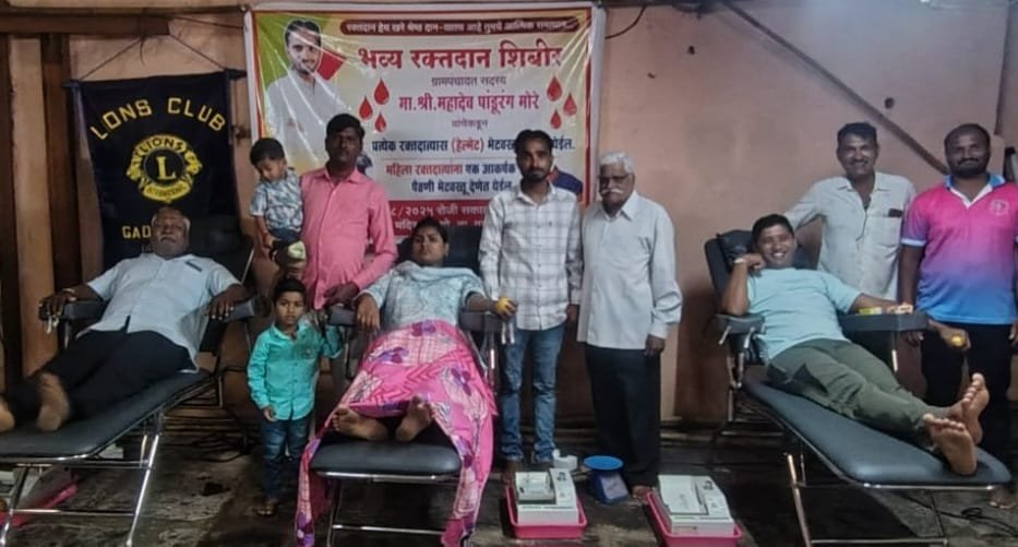 आज दि. १० रोजी झालेल्या रक्तदान शिबिरामध्ये ३२ रक्तदात्यांनी रक्तदान केले. तर यावेळी लायन्स ब्लड बँकेच्या मॅनेजमेंटने रक्तदानाचे महत्व युवकांना व येथील ग्रामस्थांना सांगितले. त्यानंतर २८ युवकांनी तर चार महिलांनी रक्तदान केले. शिबिरामध्ये गावतील विविध तरुण मंडळाचे युवक सहभाग झाले होते.