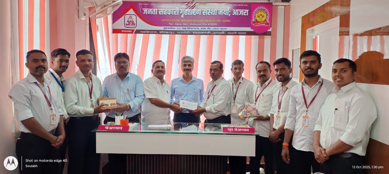 जनता सहकारी गृहतारण संस्था आजराची सुरूवात अत्यंत खडतर परिस्थितीत झाली असून संस्थेने रौप्यमहोत्सवी वर्षामध्ये पर्दापण केले आहे. याच टप्प्यावरती संस्थेने सभासदांच्या विश्वासास पात्र १०० कोटी ठेवींचा टप्पा पुर्ण केला आहे. ठेवी आणि कर्जाचा योग्य समतोल राखत संस्था प्रगतीच्या दिशेने वाटचाल करत आहे. संस्थेच्या या वाटचाली मध्ये कर्मचाऱ्यांचे योगदान लक्षात घेऊन संस्थेकडून (१६.६६%) दिवाळी बोनस देत आहोत असे प्रतिपादन संस्थेचे चेअरमन श्री. मारूती मोरे यांनी केले.