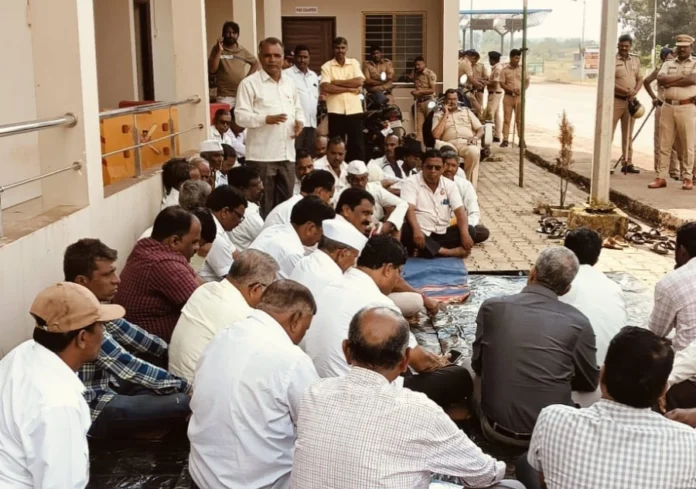 आजरा साखर कारखान्याने गतवर्षीची थकीत एफ आर पी १ कोटी ९५ लाख सन २०२२/२३ चा ५० रू चा थकीत हप्ता व चालु हंगामाचा ऊसाची पहिली ऊचल ३७५१ रू जाहिर करावी यासाठी स्वाभिमानी शेतकरी संघटनेचे वतीने आजरा टोल नाक्याजवळ कारखान्याची वाहने अडवण्यात आली त्याचवेळी कारखान्याचे संचालक मंडळ टोलनाक्यावर जमा झाले झाले आणि संचालक व स्वाभिमानी चे पदाधिकारी यांची टोलनाक्यावर बैठक सुरू झाली.
