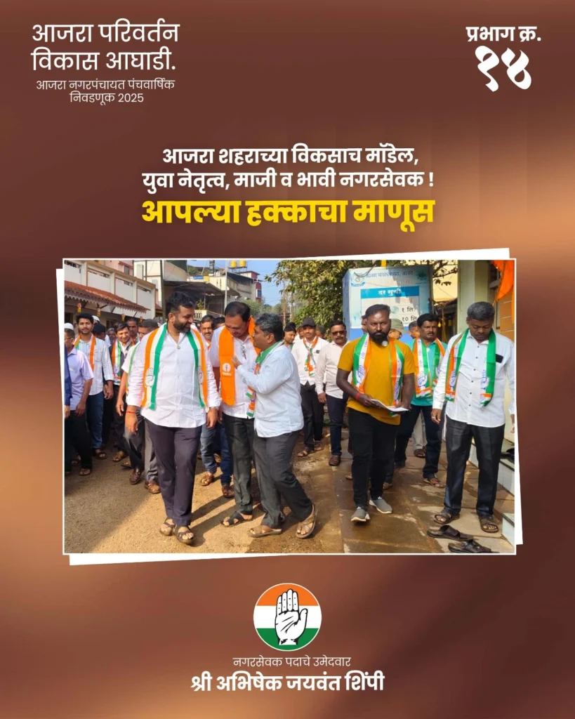 आजरा नगरपंचायत सार्वत्रिक निवडणूक २०२५ च्या पार्श्वभूमीवर आजरा परिवर्तन आघाडीने आपला प्रचाराचा जोर अधिक वाढवला असून, मतदारापर्यंत थेट पोहोचण्याच्या दृष्टीने विविध सर्वच प्रभागात घरोघरी संपर्क मोहीमा राबविण्यात येत आहेत. त्यानुसार, अनेक प्रभागातील मतदारांनी पाणीपुरवठा, गटारव्यवस्था, रस्ते दुरुस्ती, महिलांसाठी सुविधा, तसेच तरुणांना रोजगाराभिमुख उपक्रम सुरू करण्याच्या मागण्या उमेदवारांसमोर मांडत आहेत. उमेदवारांनी सर्व समस्या प्राधान्याने सोडवण्याचे आश्वासन देत पारदर्शक, विकासाभिमुख कारभार करण्याचे आश्वासन दिले. नगराध्यक्ष पदाचे उमेदवार संजय सावंत यांनी दिले.
