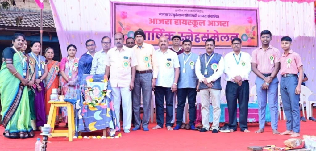 आजरा येथील जनता शिक्षण संस्था संचलित आजरा हायस्कूल आजरा येथे दि ३ रोजी वार्षिक स्नेहसंमेलनाला सुरुवात झाली असून या स्नेहसंमेलनाचे उद्घाटन आंतरराष्ट्रीय कबड्डी स्पर्धेने संस्थेचे उपाध्यक्ष विलास नाईक यांच्या हस्ते ध्वज पूजन व ध्वजारोहणाने झाली सामूहिक राष्ट्रगीत सादर झाले शाळेची खेळाडू कुमारी दीपा गोपाळ नाईक हिने क्रीडा प्रतिज्ञा दिली मैदान पूजन संस्थेचे मुख्य कार्यकारी अधिकारी डॉ. अनिल देशपांडे यांच्या हस्ते तर क्रीडा ज्योत प्रज्वलन संचालक डॉ. दीपक सातोस्कर यांच्या हस्ते करण्यात आले. तसेच बालिका दिनानिमित्त क्रांतीज्योत सावित्रीबाई फुले यांच्या प्रतिमेचे पूजन करण्यात आले. शाळेचे मुख्याध्यापक ए एल तोडकर यांनी कार्यक्रमाची स्वागत व प्रास्ताविक केले. याप्रसंगी आजरा हायस्कूल माजी विद्यार्थिनी विमा खवरे धनश्री खवरे व पालक जयसिंग खरे यांनी शाळेच्या क्रीडा विभागासाठी क्रीडा साहित्य भेट दिल्याबद्दल तसेच आजारातील नामांकित केमिस्ट सुरजकुमार नार्वेकर यांनी शाळेसाठी प्रत्येक वर्षी प्रथमोपचार साहित्य भेट दिल्याबद्दल मान्यवरांच्या हस्ते त्यांचा सत्कार करण्यात आला या स्पर्धेसाठी मुख्य पंच म्हणून एम एस मोरे सौ एम पी चव्हाण यांनी तसेच गुणलेखक संघ व्यवस्थापक म्हणून सर्व शिक्षकांनी मदत केली यावेळी संस्थेचे सर्व संचालक सल्लागार माजी मुख्याध्यापक विद्यमान मुख्याध्यापक उप मुख्याध्यापक पर्यसेवक शिक्षक व शिक्षकेतर कर्मचारी उपस्थित होते. कार्यक्रमाचे सूत्रसंचालन व्ही. ए. पोतदार यांनी केले तर आभार उपमुख्याधिका सौ एच. एच. कामत यांनी मानले.
