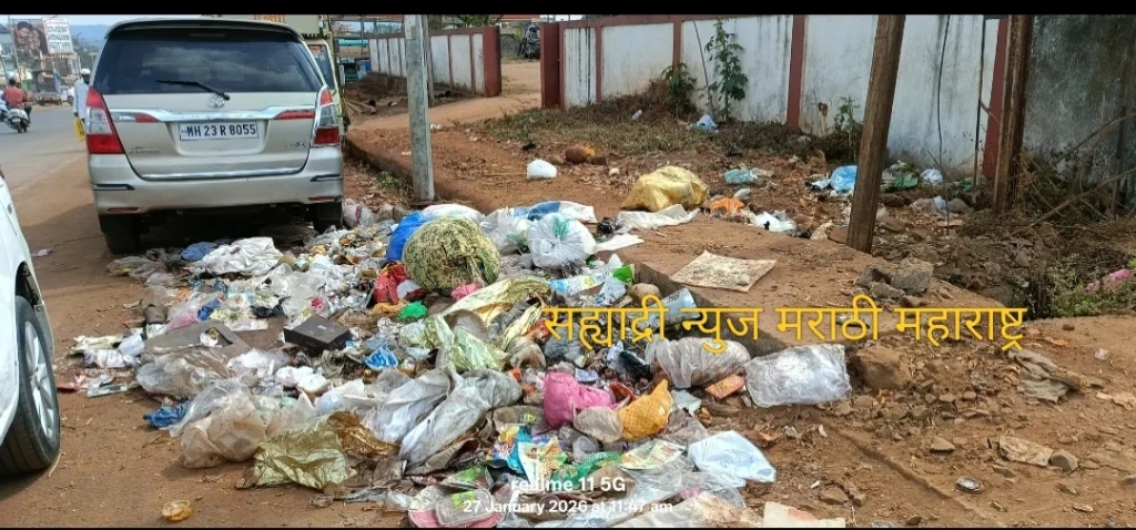 🟣आजरा – आंबोली रोड आजरा पोलीस स्टेशन समोर कचऱ्याच्या ढीगाचे साम्राज्य का?