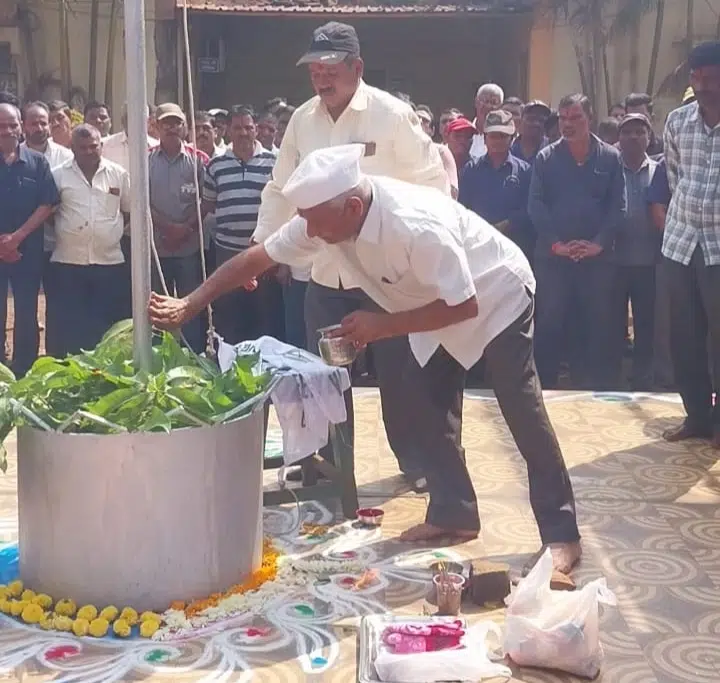 गवसे ता. आजरा येथील वसंतराव देसाई आजरा साखर कारखाना येथे राष्ट्रीय सुरक्षितता सप्ताहाची उत्साहात सुरुवात करण्यात आली. कारखान्याचे चेअरमन मुकुंददादा देसाई यांच्या हस्ते कारखाना मेन गेटवर सुरक्षितता ध्वजाचे ध्वजारोहण करण्यात आले. यावेळी सर्व कर्मचाऱ्यांना सुरक्षिततेची शपथ देण्यात आली. यावेळी मार्गदर्शनपर भाषणात चेअरमन श्री. देसाई म्हणाले की, सुरक्षिततेच्या सर्व नियमांचे काटेकोरपणे पालन करून स्वतःबरोबर कारखाना व समाज सुरक्षित राहील यासाठी आपण सर्वांनी दक्ष राहून काम करावे. त्यासाठी प्रशासनाची आपल्याला कायम साथ राहील. निष्काळजीपणा आणि बेफिकीरपणाने केलेले काम स्वतःबरोबर समाजाला हानिकारक ठरते. यावेळी कारखान्याचे कार्यकारी संचालक एस के सावंत, जनरल मॅनेजर एम आर पाटील, कार्यालयीन अधीक्षक अनिल देसाई, एच आर मॅनेजर एस पी भादवणकर, ऊस पुरवठा अधिकारी अजित देसाई, सुरक्षा अधिकारी जगदीश देसाई, हेड टाईम किपर लहू पाटील यांच्यासह विविध विभागाचे खाते प्रमुख उपखाते प्रमुख व कर्मचारी मोठ्या संख्येने हजर होते. संपूर्ण कार्यक्रमाचे सूत्रसंचालन सेफ्टी ऑफिसर रमेश देसाई यांनी केले.