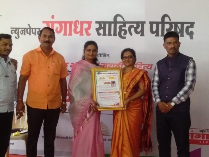 न्युजपेपर गंगाधर साहित्य परिषद वतीने दिला जाणारा अखिल भारतीय मराठी साहित्य कवी कट्टा पुरस्कार कवी लेखिका वर्षाविजय तावडे उर्फ कमल देवकर यांना