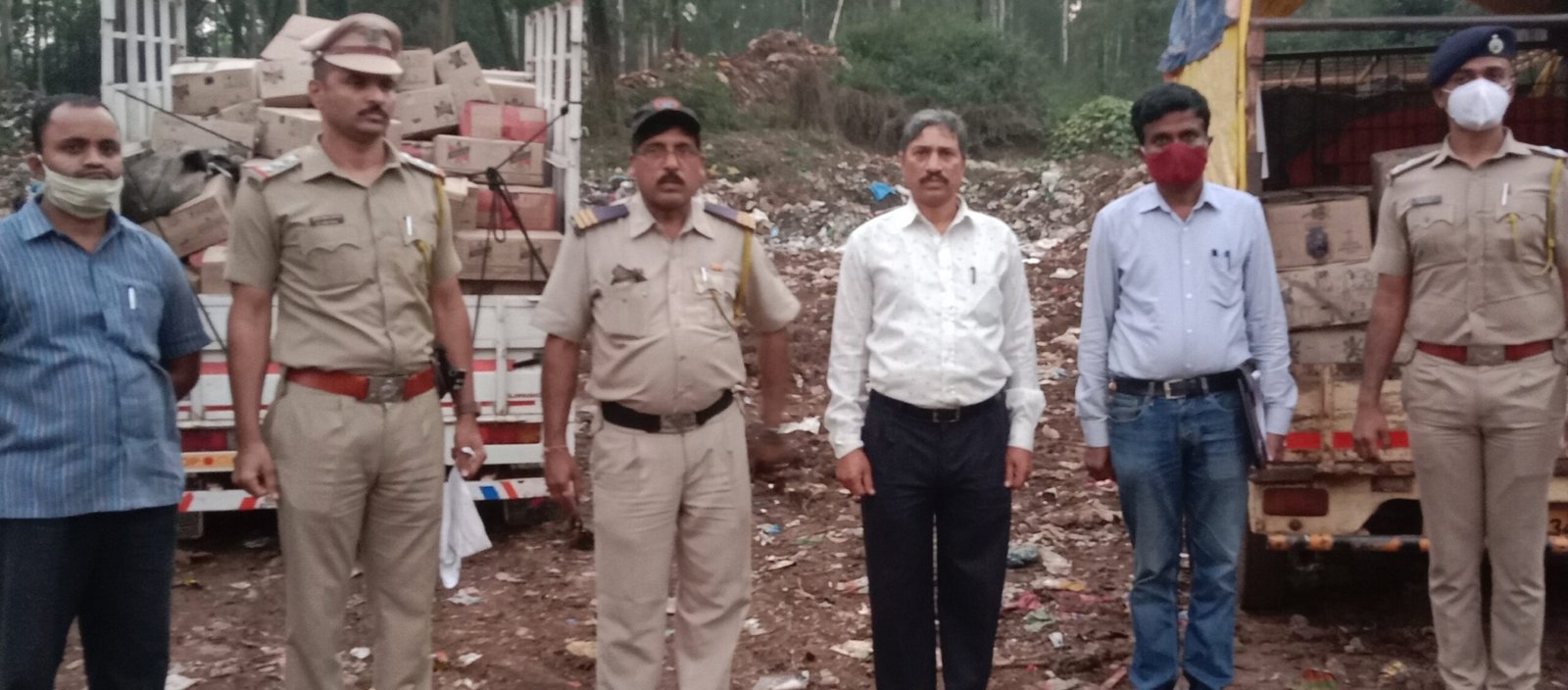 आजरा पोलिस ठाणेकडिल २०१७ ते २०२१ या सालातील दाखल झालेले दारूबंदीचे ३६ गुन्ह्यातील जप्त मुद्देमाल यामध्ये देशी-विदेशी बिअर असा एकूण ४ लाख ९८ हजार रुपये किमतीचा मुद्देमाल पोलिस अधीक्षक शैलेश बलकवडे, अप्पर पोलीस अधीक्षक गडहिंग्लज विभाग श्रीमती जयश्री गायकवाड, उपविभागीय अधिकारी राजीव नवले यांच्या मार्गदर्शन माने न्यायालयातून सदर करण्याबाबतचे आदेश करून घेऊन आज दि. २३ रोजी सदरचा मुद्देमाल पोलिस आजरा येथील गांधीनगर येथे जेसीबीच्या साह्याने खड्डा काढून ३६ गुन्ह्यातील दारू बंदी गुन्ह्याचा जप्त माल राज्य उत्पादन शुल्क विभाग पोलीस उपनिरीक्षक शीतल शिंदे यांचे उपस्थित दोन शासकीय पंच धनाजी चव्हाण व सुखदेव लुगडे यांचे समक्ष सहा.पोलीस निरीक्षक सुनील हरुगडे पोलीस उपनिरीक्षक युवराज जाधव व पोलिस ठाण्यातील पोलिस कारकून पो. हे. काॅ. देऊस्कर व पोलीस अमलदार यांनी नाश केला.