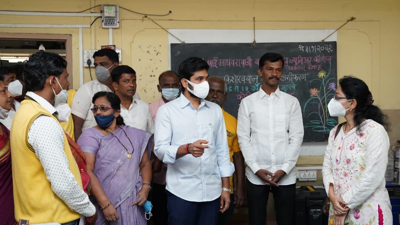 आजपासून १५ ते १८ वयोगटातील मुला-मुलींच्या लसीकरणाला सुरवात करण्यात आली आहे. या पार्श्वभूमीवर आज कोल्हापूर दक्षिण मतदारसंघातील विक्रमनगर येथील भाई माधवराव बागल हायस्कूल येथील लसीकरण केंद्राला भेट देऊन लसीकरणाचा आढावा घेतला.