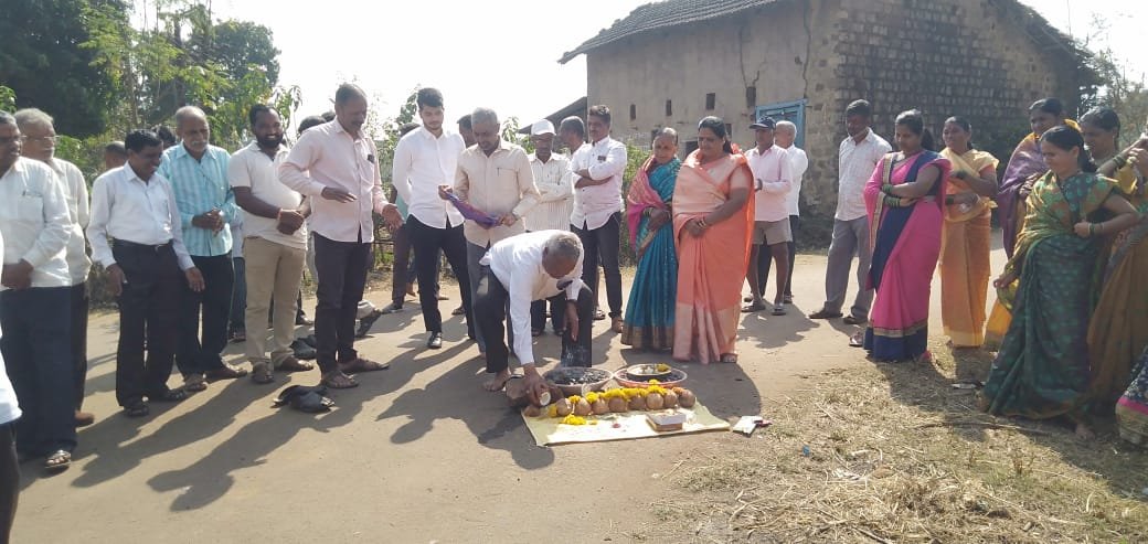 आजरा दाभेवाडीतील उर्वरित रत्याच्या कामाचा शुभारंभ.- जि. प. सदस्या सुनिता रेडेकर .( जेष्ट नागरिक नारायण मुरकुटे यांच्या हस्ते उद्घाटन समारंभ संपन्न.)