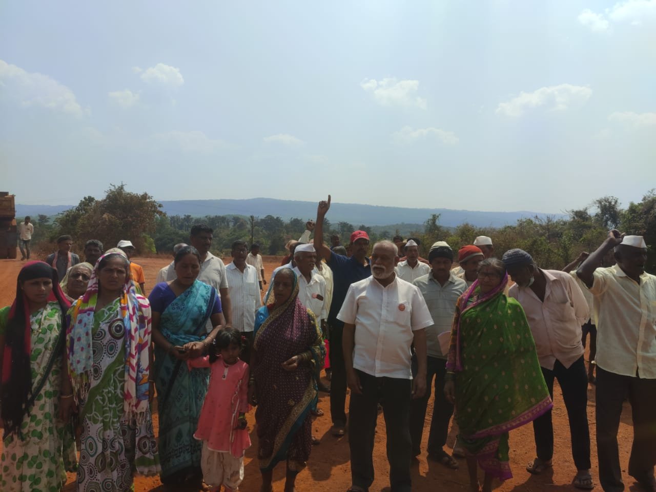 आधी पुनर्वसन मगच धरण, जमीन आमच्या हक्काची अशा घोषणा देत प्रकल्पग्रस्त धरणस्थळावर आले. घोषणा देऊन धरणाचे काम बंद पाडले. यावेळी कॉम्रेड संपत देसाई, दशरथ घुरे, शंकर ढोकरे, गंगाराम ढोकरे, हरी सावंत, अनिल अमूनेकर, धोंडिबा सावंत, एकनाथ गुंजाळ, धाकू कविटकर, वसंत राणे, बाबू ढोकरे, तुकाराम शेटगे, मोतेश बारदेस्कर, गोपिका डेळेकर यांच्यासह प्रकल्पग्रस्त मोठ्या संख्येने उपस्थित होते.