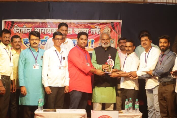 नितीन आसयेकर फॅन क्लबचा चौथा वर्धापनदिन सोहळा उत्साहात संपन्न.- मुसळधार पावसातही संयुक्त नाटकाला रसिकांचा उदंड प्रतिसाद.- हरित संकल्पना राबवत मान्यवरांचा सन्मान सोनचाफा रोपने