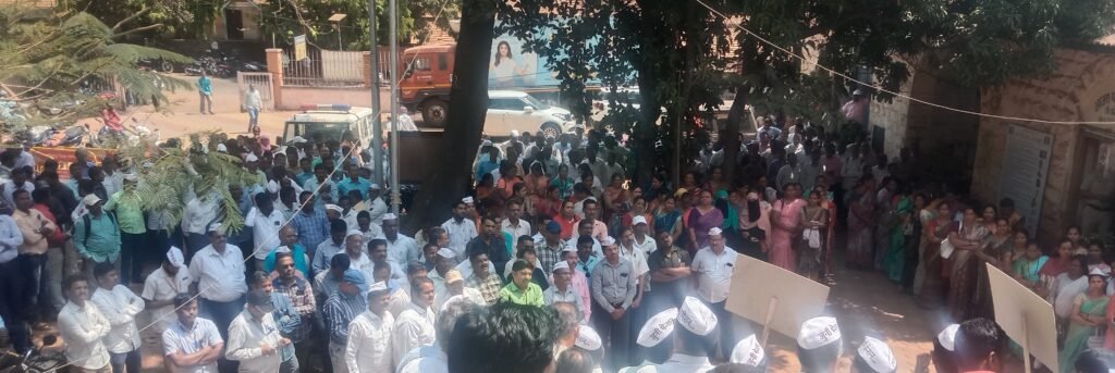 राज्यभरातील सरकारी आणि निम सरकारी कर्मचारी संप पुकारला आहे. सरकारकडून कोणतेही ठोस आश्वासन न मिळाल्याने कर्मचारी संपावर ठाम आहेत. सरकारकडून समिती स्थापन करणार असे सांगण्यात येत असले तरी निर्णयाची शाश्वती सरकार देत नसल्याने कर्मचारी संपावर जाणार असल्याचे यावेळी कर्मचारी यांनी सांगितले. यावेळी एकनाथ आजगेकर, संभाजी बापट, संजय दिवेकर, प्रकाश जोशीलकर, दिपक कदम, दिलिप संकपाळ, श्री. विभुते, कपिल पाटील यांनी मनोगते व्यक्त करत विविध मागण्या केल्या यामध्ये.