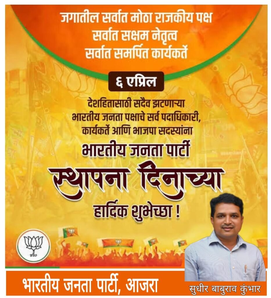 या सर्वांना प्रथमतः आदरांजली या व सध्याच्या कार्यरत असलेल्या पदाधिकारी यांनी अहोरात्र पक्षासाठी वेळ देऊन पक्ष वाढवण्यासाठी व पक्षाची ध्येय धोरणे घरोघरी पोहोचण्यासाठी सातत्याने प्रयत्न केला आहे व त्याचे फळ म्हणून आज भारतीय जनता पार्टी हा पक्ष देशातल्या अनेक राज्यासह देशपातळीवर होऊन पोहोचवला आहे प्रथमतः या सर्व पक्षासाठी काम करणाऱ्या सर्वांना प्रथम शुभेच्छा यापुढेही येणाऱ्या काळात पक्षाची ध्येय धोरणे लोकांच्या पर्यंत पोहोचवून होऊ घातलेल्या २०२४ च्या लोकसभा व विधानसभा निवडणुकीमध्ये अशाच पद्धतीने कार्य करून पक्ष वाढीसाठी प्रयत्न करावे आज वर्धापन दिनाच्या निमित्ताने २०२४ निवडणुकीच्या पार्श्वभूमीवर मतदार यादीचे वाटप करण्यात आले. दिवसभरामध्ये मतदारसंघांची पुनर्बांधणी पक्ष बांधणी याबाबतचे आयोजन करण्यात आले असल्याची माहिती तालुकाध्यक्ष सुधीर कुंभार यांनी माहिती दिली.
