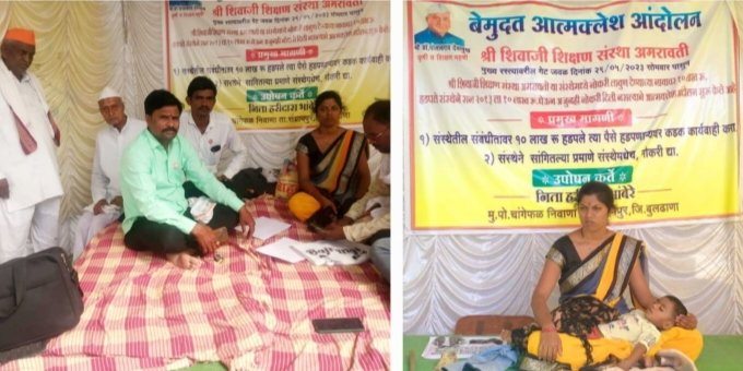 बुलढाणा जिल्ह्यातील मौजे चांगेफळ येथिल अल्पभूधारक शेतकरी कुटुंबातील निता निलेश तेल्हारकर (भांबेरे) या महिलेकडुन १० लाख रुपये घेऊन संस्थने फसवणुक केली आहे. सन २०१३ मधे श्री शिवाजी शिक्षण संस्थेचे तत्कालीन संस्थेचे अध्यक्ष अरुण शेळके,उपाध्यक्ष महादेव भुईभार व संस्थेचे सचिव वी गो भांबुरकर यांनी संस्थेमधे नोकरी लावून देण्याच्या नावावर १० लाख रुपये घेऊन अजूनही नोकरी दिली नसल्याने महिलेने अमरावती येथे श्री शिवाजी शिक्षण संस्थेच्या गेटवर दोन दिवसांपासून बेमुदत उपोषण चालु केले आहे.