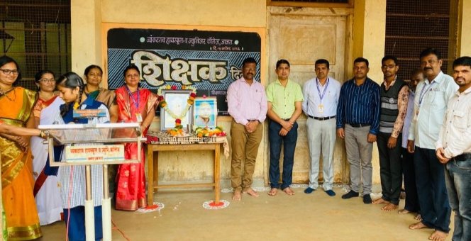 तसेच विध्यार्थी चित्रकार कु.उमेश केरकर या विद्यार्थ्याने डॉ. सर्वपल्ली राधाकृष्णन यांचे रंगीत खडूने प्रशालेच्या दर्शनी भिंतीवर चित्र रेखाटले.या बालकलाकाराचे विद्यार्थी व शिक्षकातून कौतुक झाले.