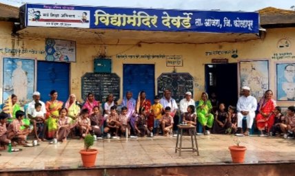 देवर्डे येथील विद्या मंदिर व श्री रवळनाथ हायस्कूल देवर्डेत आजी आजोबा दिवस उत्साहात साजरा करण्यात आला ढोल ताशांच्या गजरात आजी आजोबांना शाळेत आणले सरो जिनी कुंभार रेश्मा बोलके देवेंद्र शिखरे या शिक्षकांनी आजी आजोबांचे फुल देऊन स्वागत केले यानंतर विद्यार्थ्यांनी आपल्या आजी-आजोबांचे पाद्यपूजन केले त्यानंतर आजी आजोबांनी आपले अनुभव कथन केले यामध्ये संभाजी कांबळे यांनी वाढदिवसाचे गीत सादर केले दौलती तानवडे यांनी अभंगाच्या माध्यमातून माहिती सांगितली व या उपक्रमाचे कौतुक केले तसेच माजी सैनिक अनंत सुतार यांनी सैन्य दलातील माहिती सांगितली तसेच आजी आजोबांनी गप्पा मारल्या व या उपक्रमाचे कौतुक केले सरोजिनी कुंभार देवेंद्र शिखरे या शिक्षकांनी मार्गदर्शन केले याप्रसंगी मुख्याध्यापक नामदेव माईन कर सुभाष सावंत महादेव तेजम सुनील पाटील चंद्रकांत घुरे राजेंद्र पाटील महेश नावलगी या शिक्षकासह विद्यार्थी आजी आजोबा शिक्षकेतर कर्मचारी उपस्थित होते. सूत्रसंचालन श्रीकांत पाटील यांनी केले.