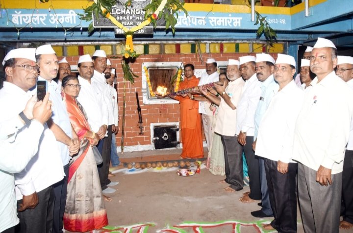 आजरा शेतकरी सह. साखर कारखान्याच्या सन ३०२३/२४ या २५ व्या गळीत हंगामाचा “बॉयलर अग्नि प्रदीपन होमहवन विधी” समारंभ मंगळवार दि.२४ रोजी कारखान्याचे संचालक मधुकर कृष्णराव देसाई व त्यांच्या सुविद्य पत्नी सौ. मंगल मधुकर देसाई यांचे शुभहस्ते संपन्न झाला. अध्यक्षस्थानी चेअरमन सुनिल शिंत्रे होते. “बॉयलर अग्नि प्रदीपन होमहवन विधी” समारंभ कारखान्याचा बॉयलर मा.प.पू. बसवकिरण स्वामीजी, जडयसिध्देश्वर बिलवाश्रम, गडहिंग्लज यांच्या व संचालक मंडळाच्या उपस्थितीत संपन्न झाला.