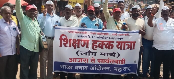 शाळा बचाव समितीच्या वतीने विविध मागण्यांच्या पार्श्वभूमीवर दि.शनिवार दि २८ रोजी आजरा येथून शिक्षण मंत्री दिपक केसरकर यांच्या सावंतवाडी येथील निवासस्थानापर्यंत लाँग मार्चला सुरवात झाली. छत्रपती शिवाजी महाराजांच्या पुतळ्याला अभिवादन करून दुपारी बारा वाजता या लाँग मार्चला सुरुवात झाली.