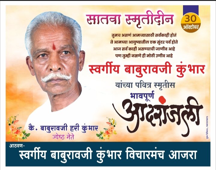 ЁЯЫСрджреНрд╡рд┐рдВрдЧрдд рдЬреНрдпреЗрд╖реНрда рдиреЗрддреЗ рд╡ рд╕рд╛рдорд╛рдЬрд┐рдХ рдХрд╛рд░реНрдпрдХрд░реНрддреЗ рд╕реНрд╡. рдмрд╛рдмреБрд░рд╛рд╡ рдХреБрдВрднрд╛рд░ рдпрд╛рдВрдЪреНрдпрд╛ рд╕рд╛рддрд╡реНрдпрд╛ рд╕реНрдореГрддреА рджрд┐рдирд╛рдирд┐рдорд┐рддреНрдд.- рдХрд╛рд░реНрдпрдЧреМрд░рд╡ рдкреБрд░рд╕реНрдХрд╛рд░ рд╕реЛрд╣рд│рд╛.