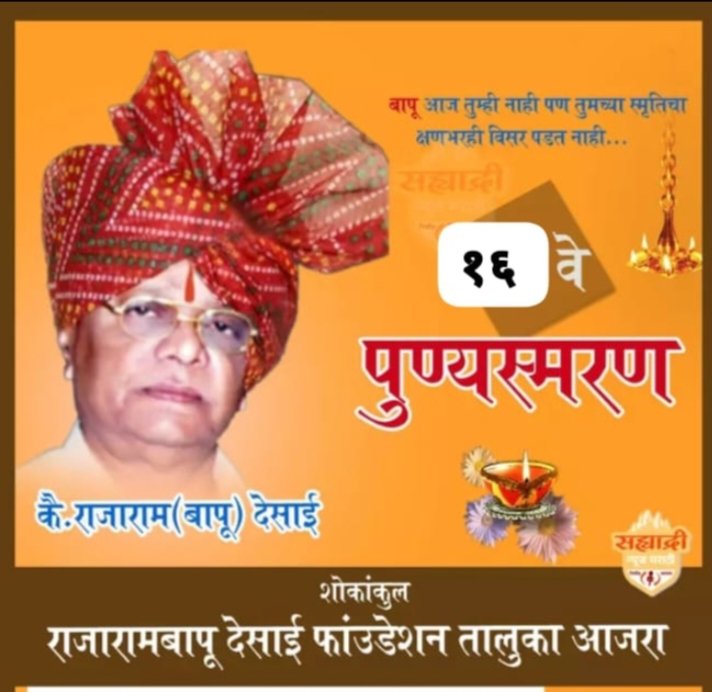 स्व. राजारामबापू देसाई यांचा सोळावा स्मृतिदिन विविध उपक्रमाने होणार साजरा.-