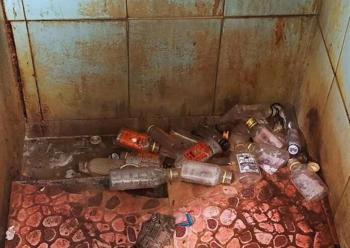 आजरा नगरपंचायतच्या मुतारीत दारूच्या रिकामी बाटलीचा. ढीग.- मुतारी बाहेरून सुंदर – आत मध्ये दुर्गंधीच.