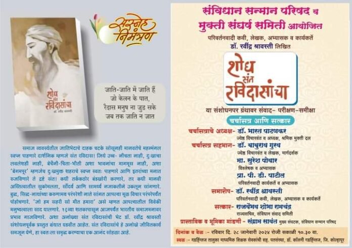 संविधान सन्मान परिषद – मुक्ती संघर्ष समितीशोध संत रविदासांचा या ग्रंथावर गडहिंग्लज मध्ये होणार रविवारी चर्चासत्र.
