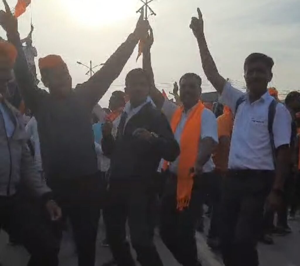 छत्रपती शिवाजी महाराज यांच्या व मराठा गीतावर तरुणांनी धरला ताल घोषणाची अतिचबाजी व भगव्या झेंड्यांचा टोप्या घालून नाच.. पुणेकरांनी दिला पाठिंबा.